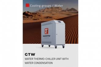 The water Thermo-cooling Units of the “GTW” range are monobloc units consisting of a water condensed cooling section and a thermoregulating section in single-zone or double-zone (Duplex) version. They are especially suitable for cooling moulds of plastics injection machines and any other industrial process requiring temperature control with temperature ranging from –5 to +140°C. Key features: